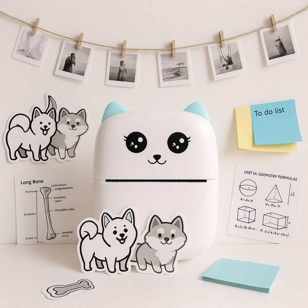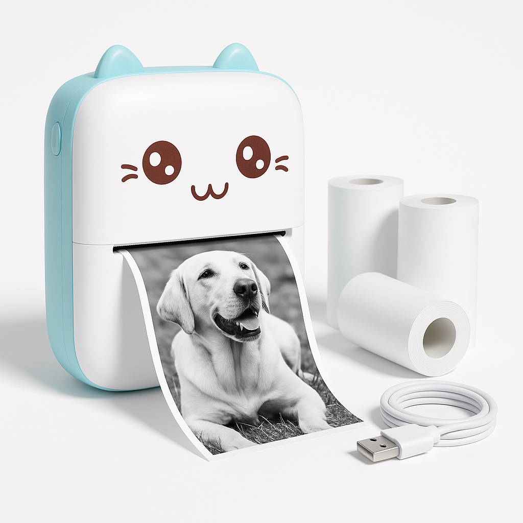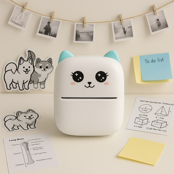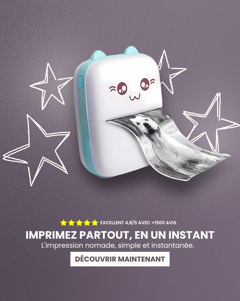 Une mini imprimante thermique compacte, sans encre, parfaite pour vos notes, photos et étiquettes, où que vous soyez.